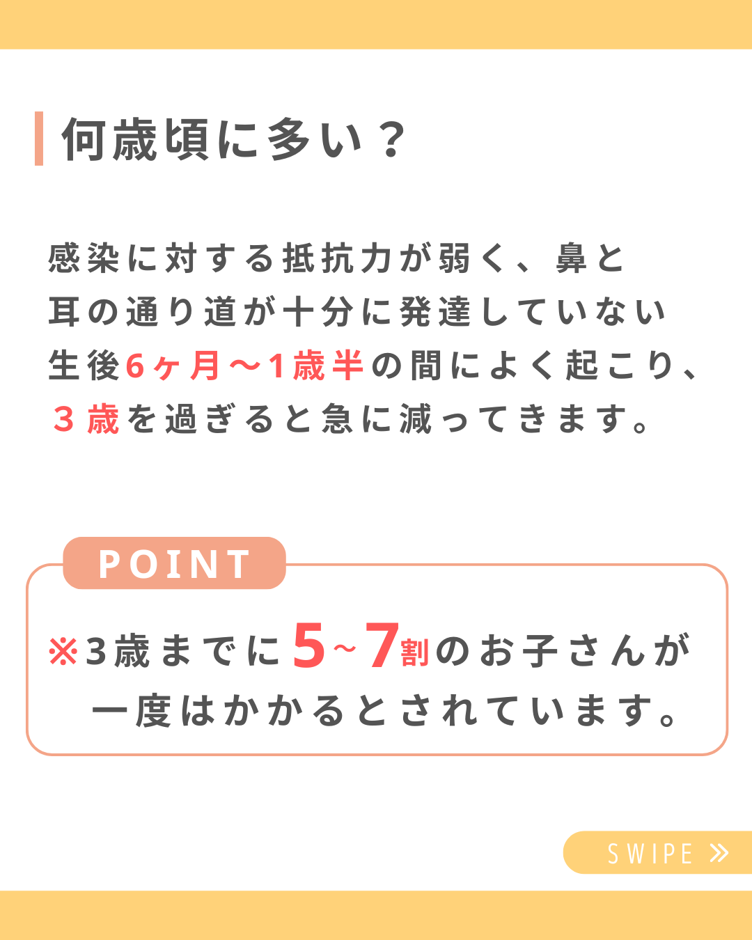 ※3歳までに5~7割のお子さんが一度はかかるとされています。