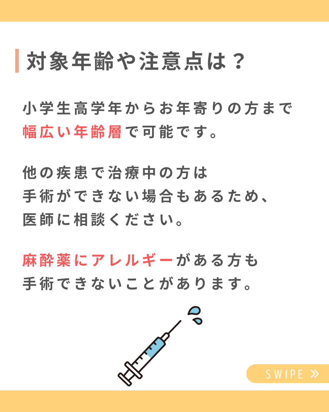 麻酔薬にアレルギーがある方も手術できないことがあります。