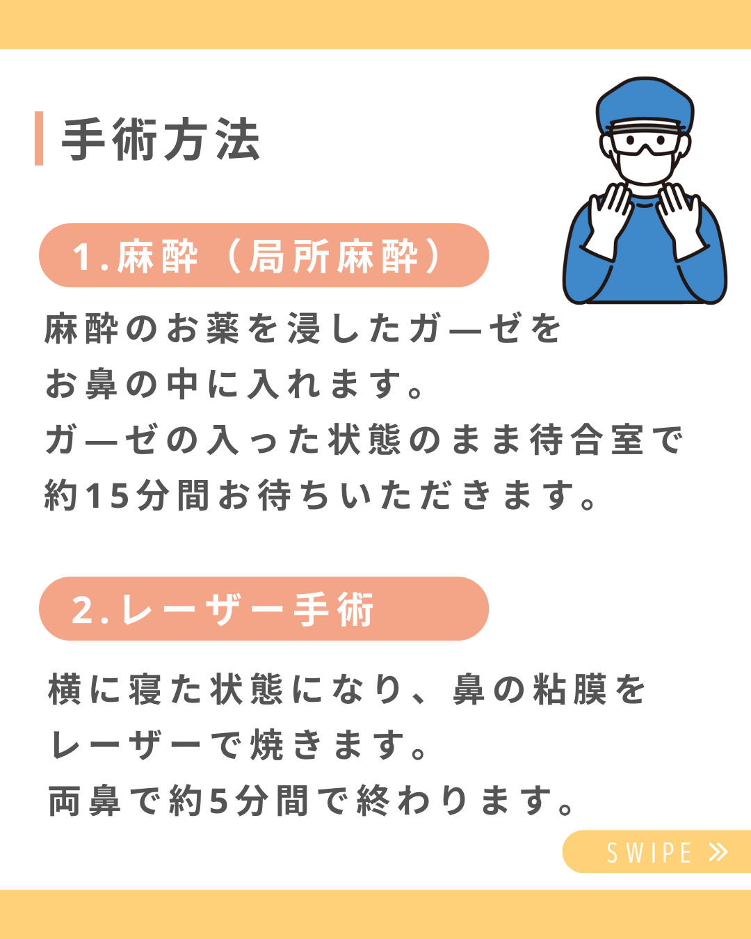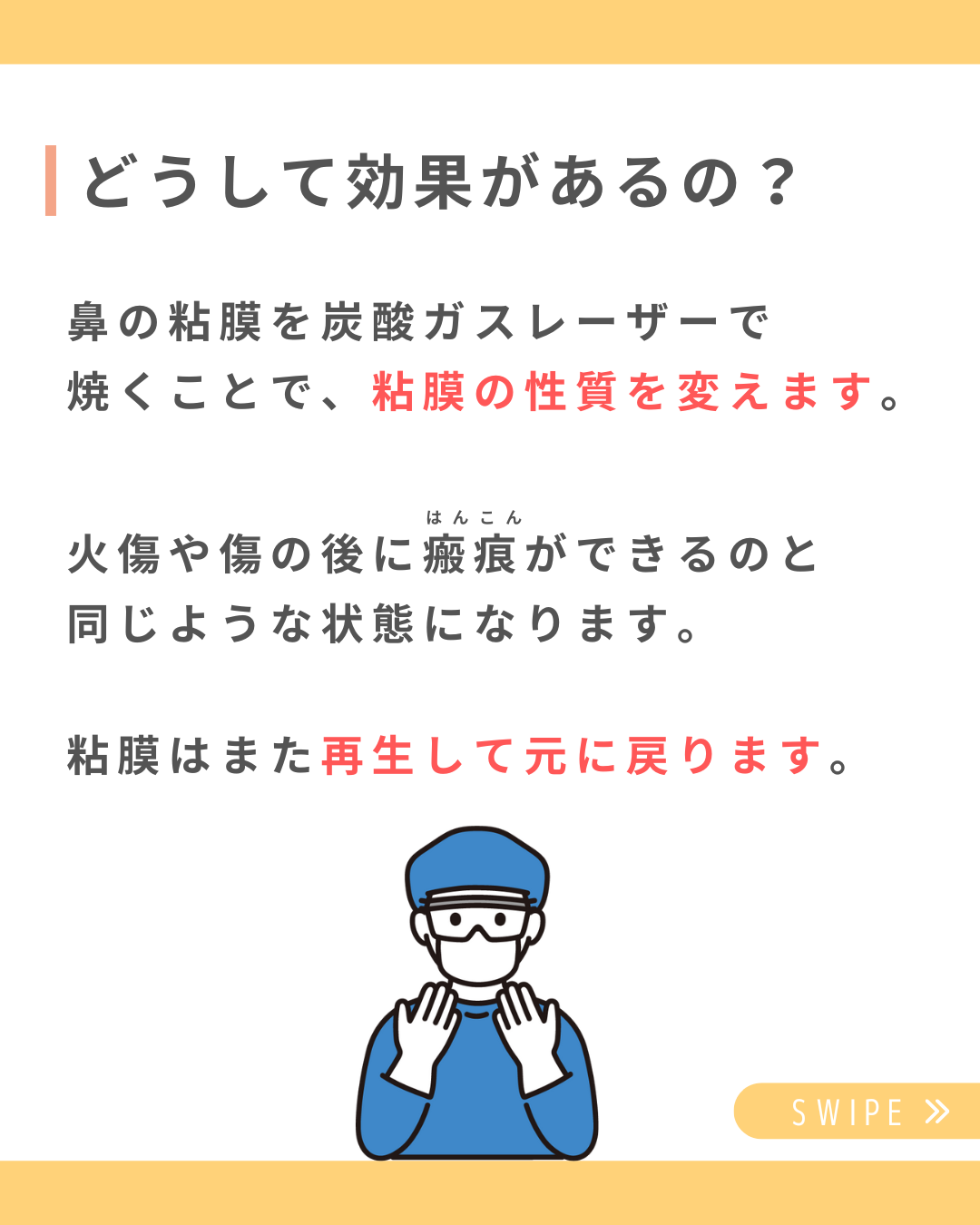 鼻の粘膜を炭酸ガスレーザーで焼くことで、粘膜の性質を変えます。