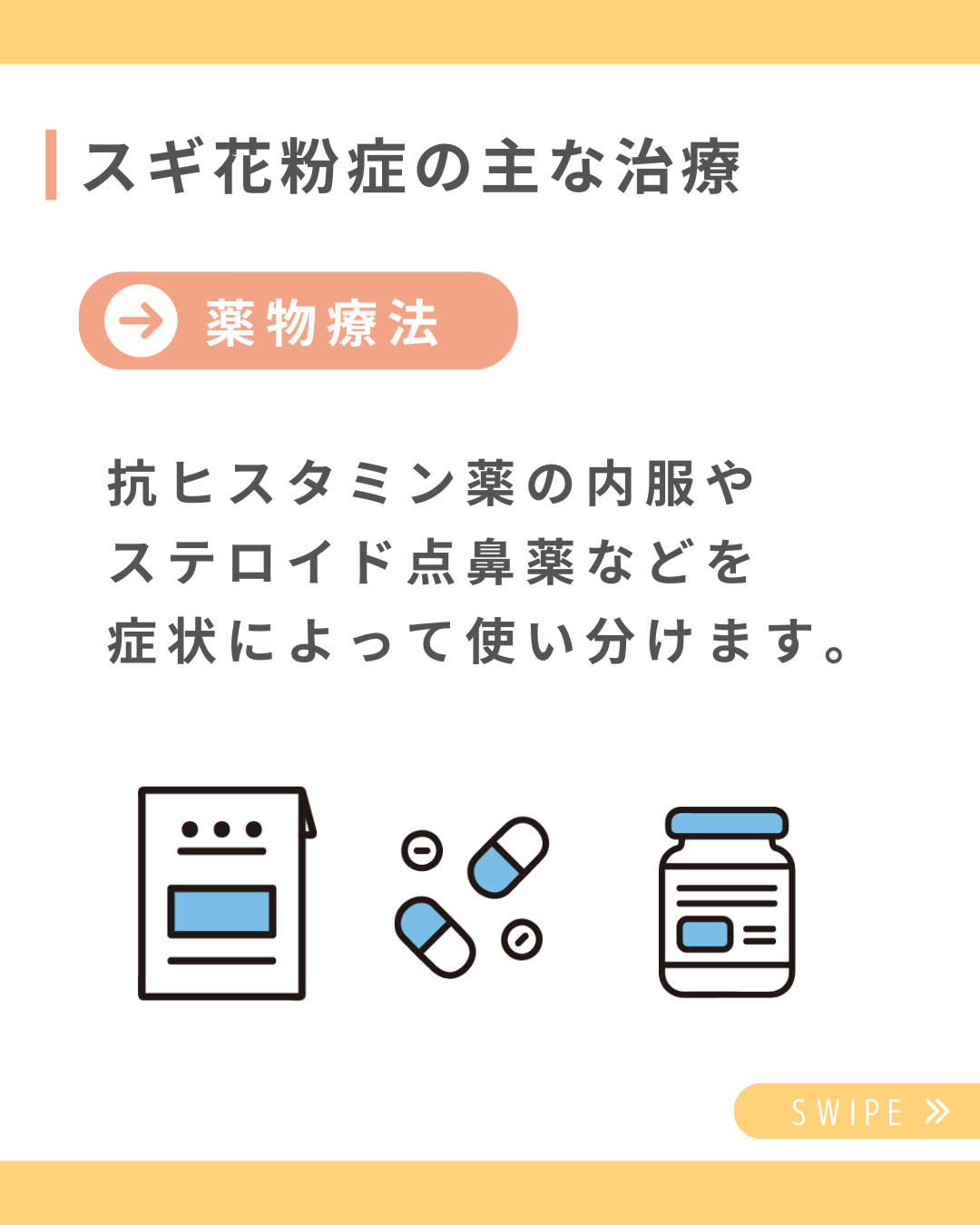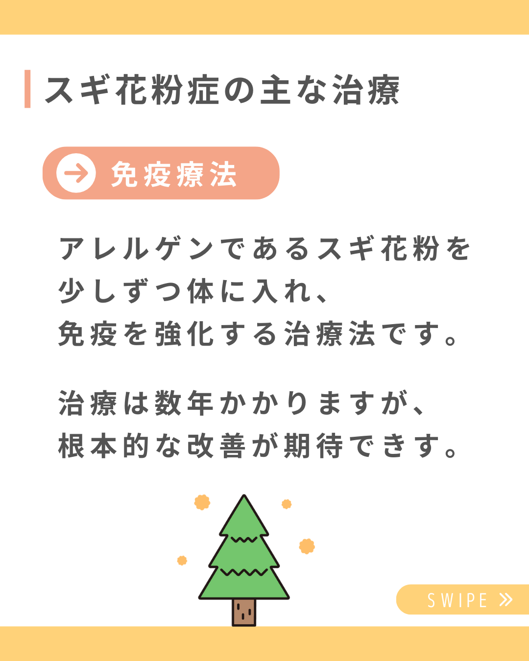 今回の投稿ではスギ花粉症の主な治療方法についてご紹介します🙆🏻♀️