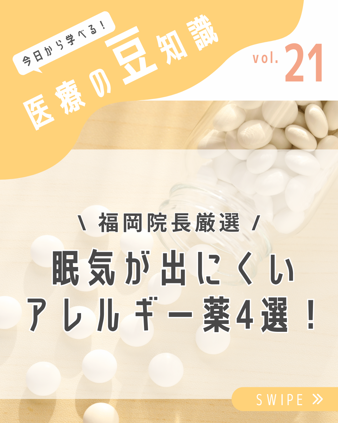 医療の豆知識#21 眠気が出にくいアレルギー薬4選!