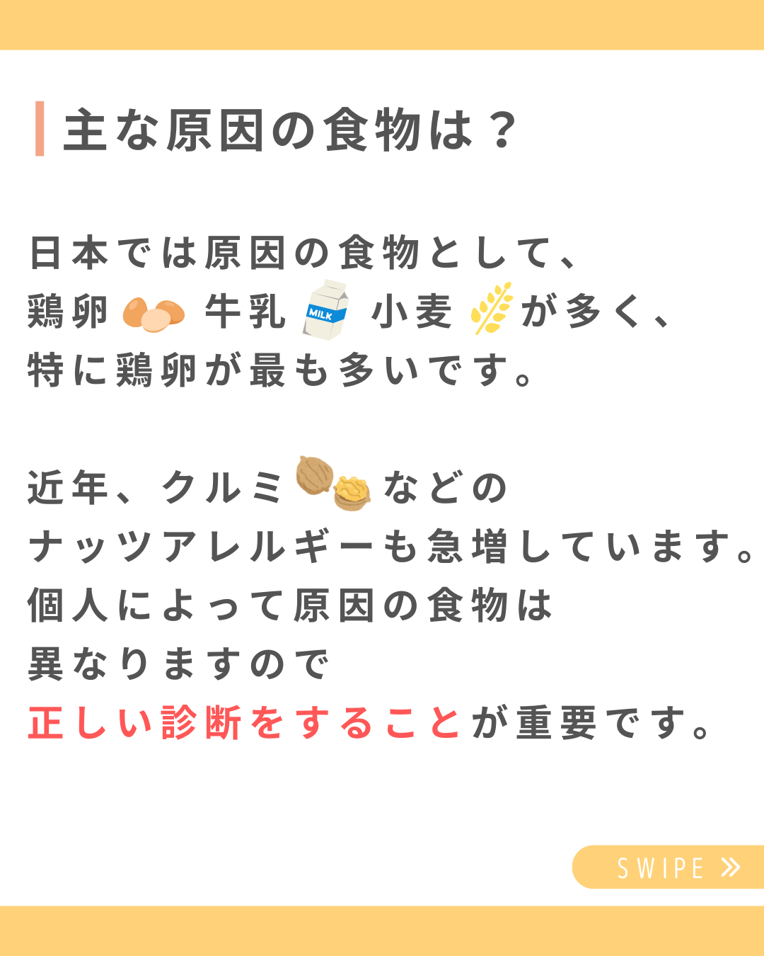 個人によって原因の食物は異なりますので、正しい診断をすることが重要です。