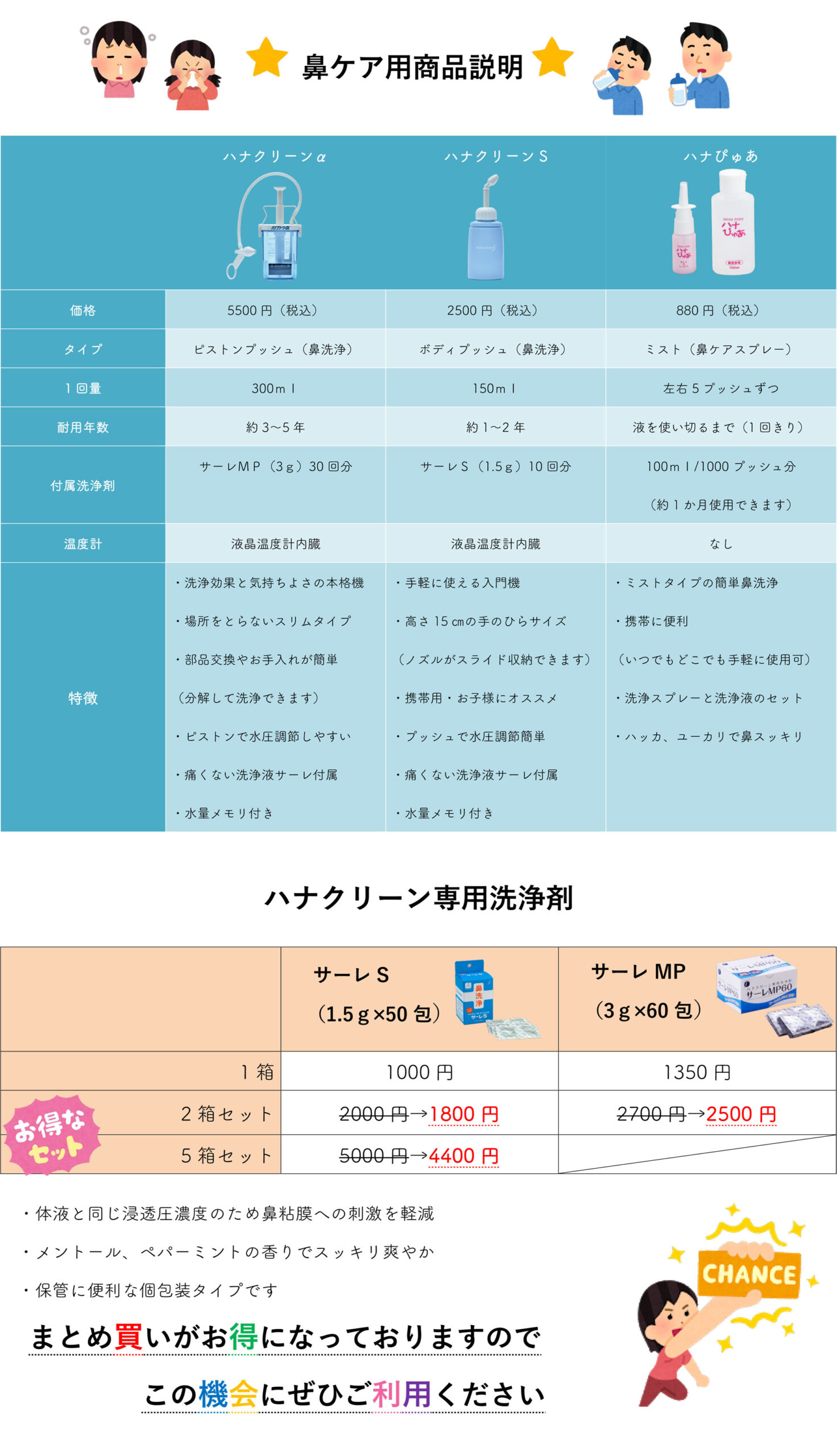 また、サプリメント、電動鼻水吸引器などもございますので、ぜひご覧ください。