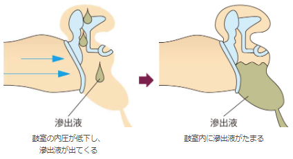 - 鼓室の内圧が低下し、滲出液が出てくる